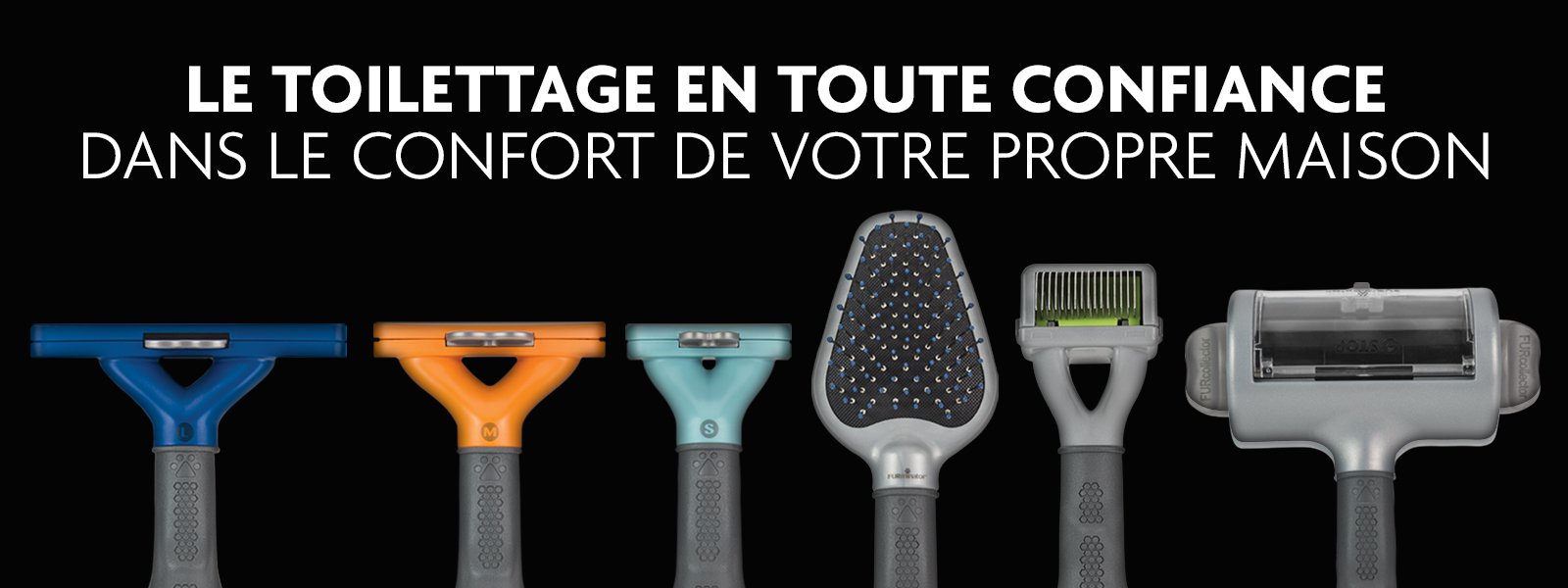 Prenez en charge votre routine de toilettage avec le FURminator Ultimate Hair Reduction System™ (Système ultime de réduction des poils) : Brossez, débourrez, baignez et jetez les poils d’animaux en toute confiance à la maison.