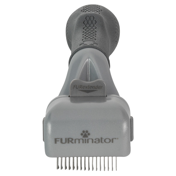 - Pour démêler le pelage de votre animal, commencez par ajuster les bords tranchants de l’outil de démêlage sur la position appropriée pour la longueur des poils de l’animal en enfonçant le bouton FURextender, puis verrouillez les bords en place avec la languette à glissière.